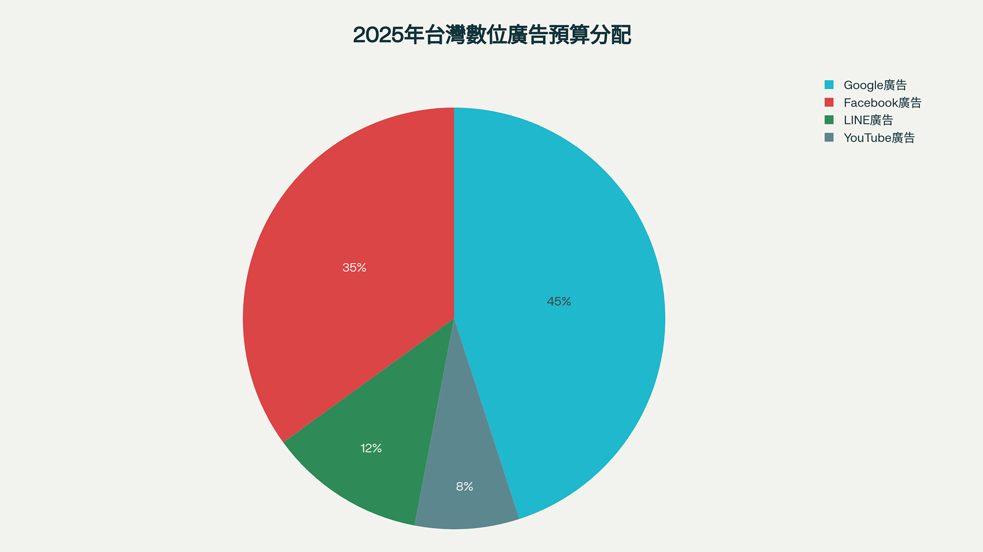 2025年台灣數位廣告預算分配圓餅圖